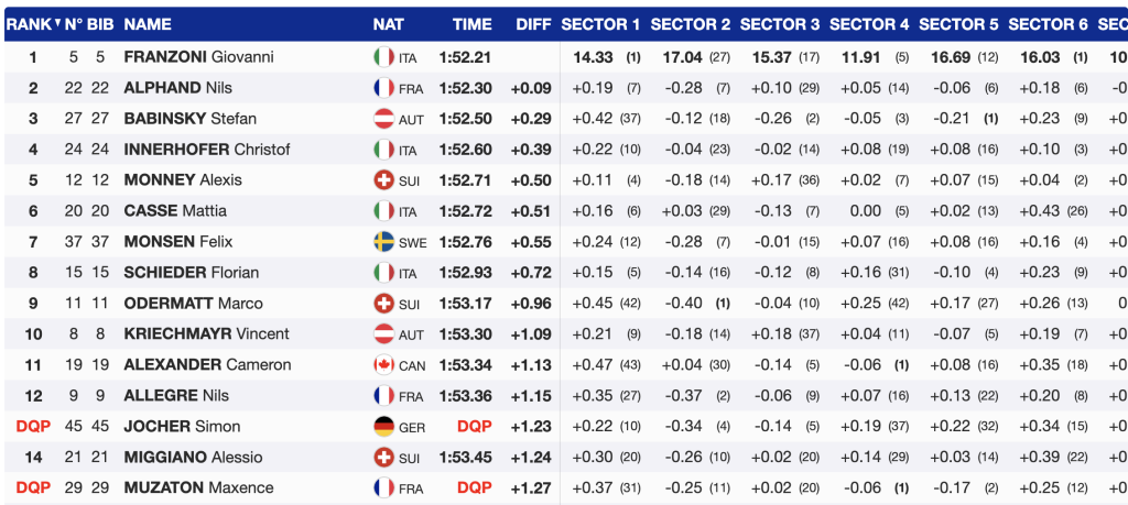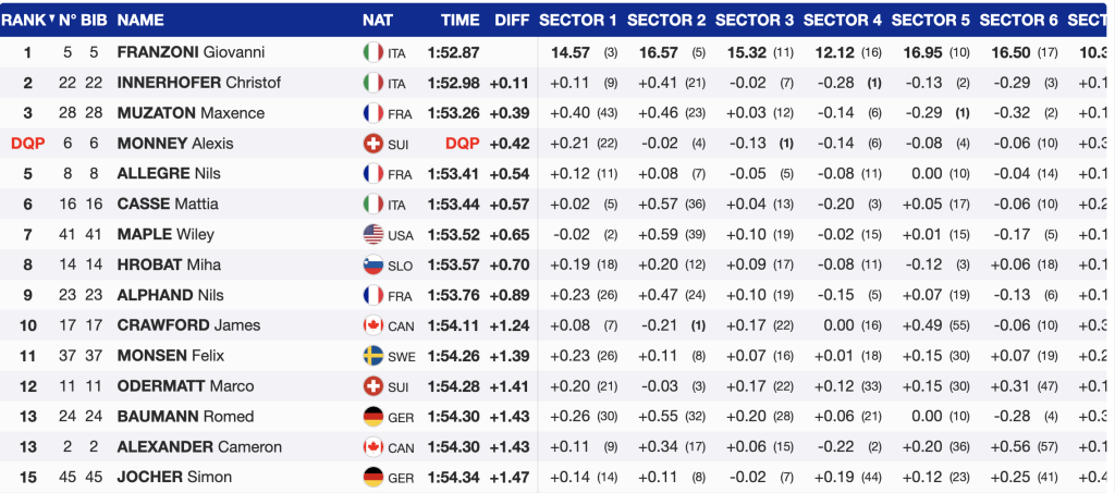“Today is a good confidence boost and I’m feeling good heading into the upcoming races, especially Kitzbühel next week,” Alexander said to Alpine Canada. “I tweaked my knee in Val Gardena and wasn’t feeling good enough to race the downhills, and I didn’t feel like myself there or in Livigno. Being able to really push today felt great.”